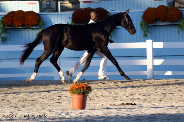 2007: Sheldon's name has been change by his owner to Summer Hit. He has been very successful this year in USDF Dressage Sport Horse Breed Shows.At the Fair Hill Dressage Sport Horse Breed Show 8/18-19, 2007, he won his yearling colts class, was colt champion, reserve champion young horse and show reserve grand champion. At Dressage at Stone Tavern 8/30/07, he won his yearling colts class, was named colt champion, champion young horse and show grand champion! At Dressage at Devon, he looked a little thin and tired, placing 6th in his class.